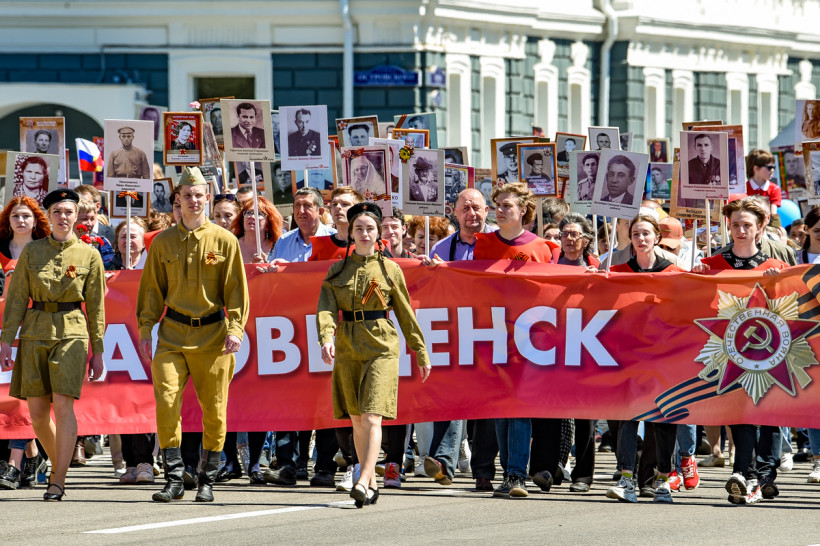 Построение колонны начнется сразу после торжественного прохождения войск Благовещенского горнизона 9 мая в 11:00 на улице Ленина (между Шимановского и Трудовой). Известно, что шествие состоится также и в Белогорске.