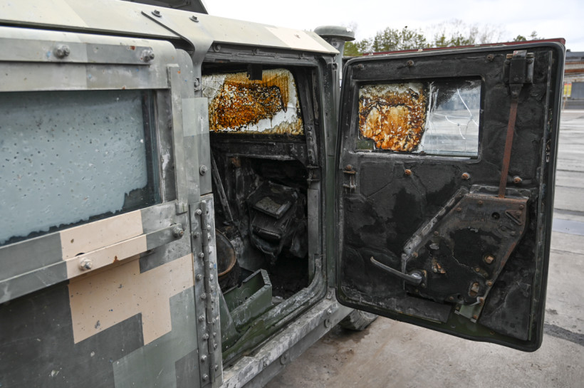 Так, например, по трофейному «Хаммеру» видно, что технику атаковали либо с дронов, либо из средств артиллерии. Снаряд попал в пространство за двигателем, а так как в этой машине десантский и водительский отсеки не защищены, произошло моментальное возгорание. Причем пламя пошло внутрь, а так как при повреждении двери моментально блокируются, то машина тут же превратилась в капсулу смерти: экипаж оттуда уже не выбрался.