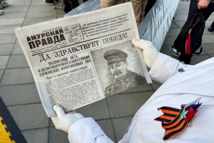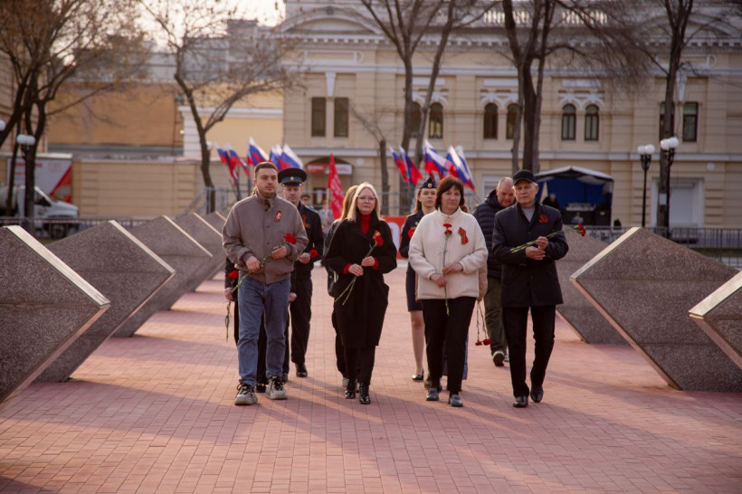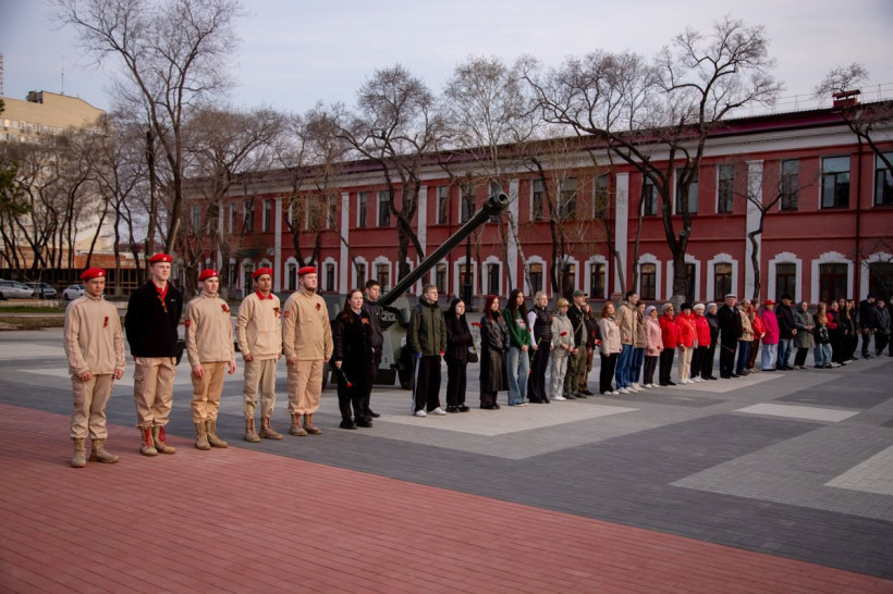 Далее, как рассказали в мэрии, участники акции «Рассвет нашей Победы» переместились на площадь Победы. На набережной Амура в это время звучали песни военных лет. Те, что пели наши солдаты в 1945 году в Берлине. Символично, что набережная в мае 80 лет назад представляла собой линию фронта. На правом берегу реки располагались войска милитаристской Японии.