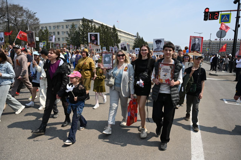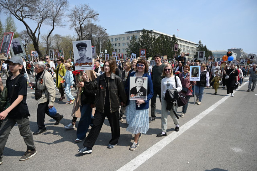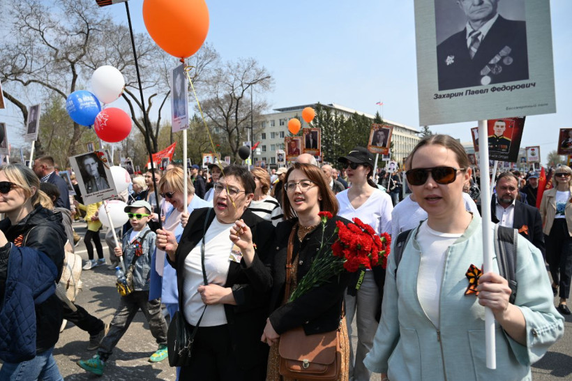 80 тысяч человек пронесли портреты своих Героев: по Приамурью прошел Бессмертный полк (фото)