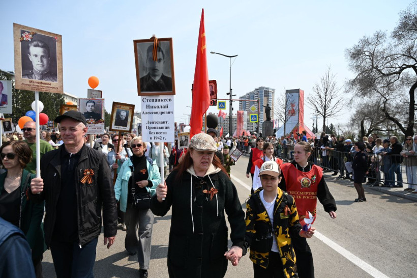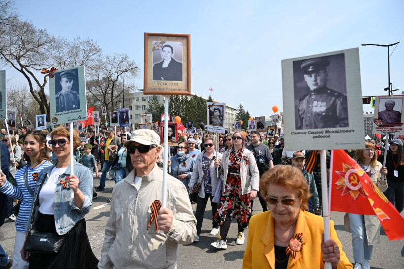 Между тем на официальном сайте Всероссийского движения прямо сейчас ведется трансляция «Бессмертного полка Онлайн». В виртуальном шествии по всему миру приняли участие более пяти миллионов человек, в том числе несколько десятков тысяч дальневосточников.