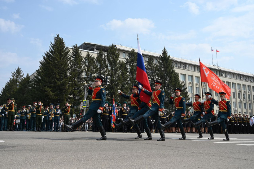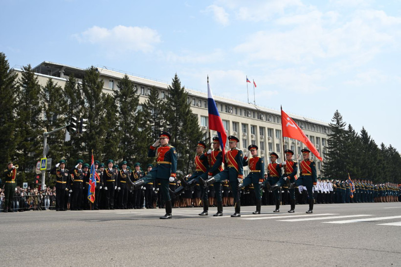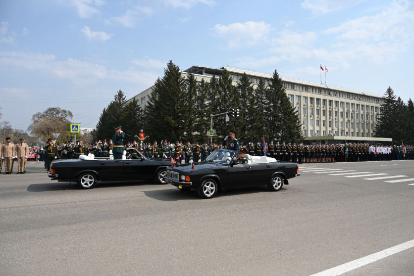 Торжественный марш Победы состоялся в пятницу, 9 мая, на улице Ленина в Благовещенске. В нем приняли участие 53 парадных расчета, более 2000 человек и 20 единиц военной техники. Зрителей и участников праздничного события поприветствовал губернатор Амурской области Василий Орлов.