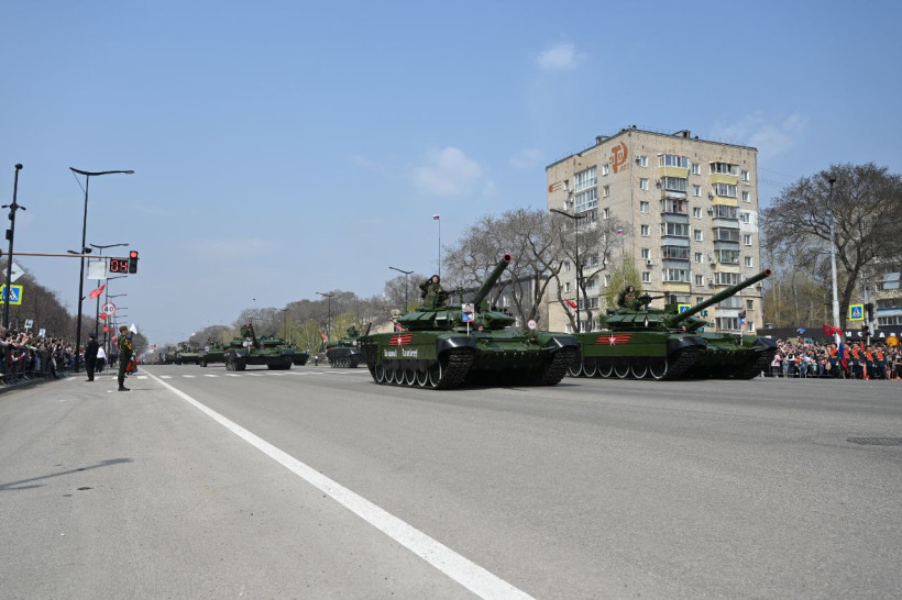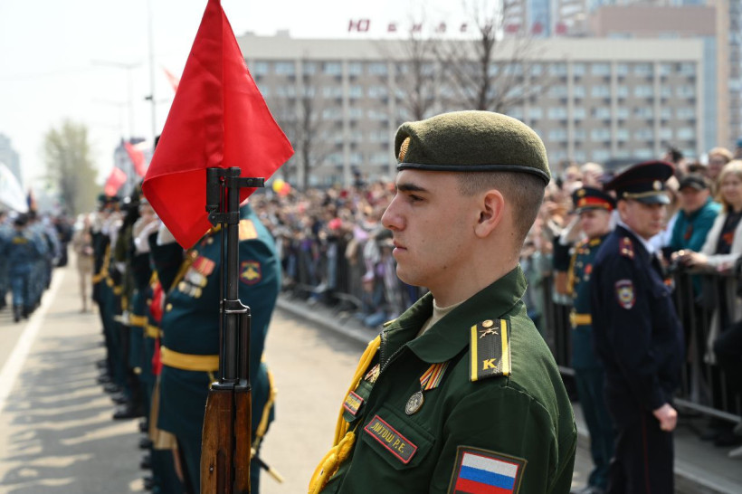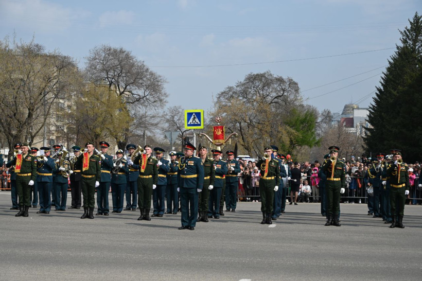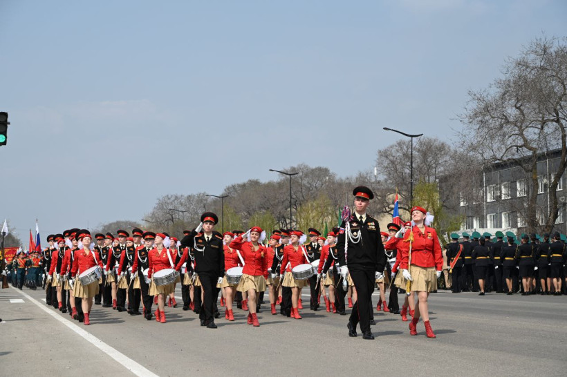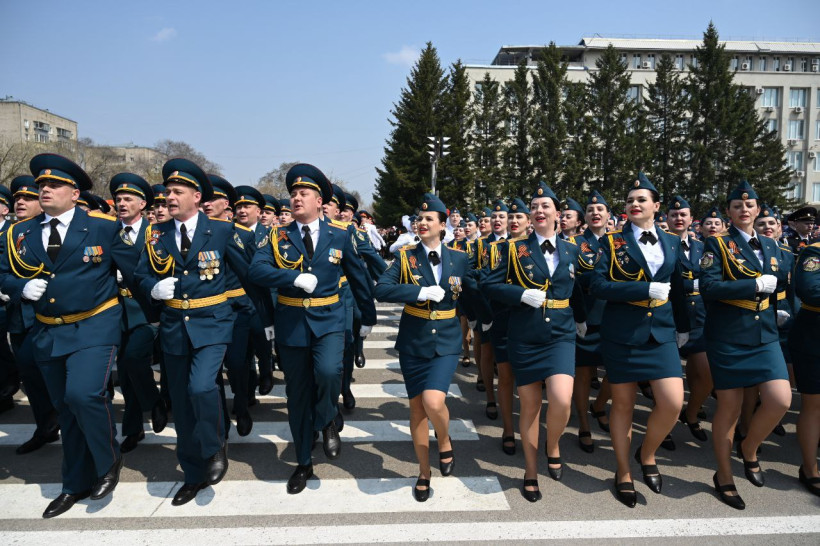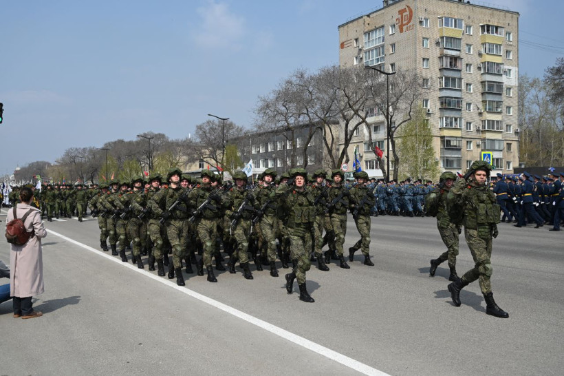 Торжественное прохождение войск в Благовещенске завершилось общей песней, состоящей из композиций «День Победы», «Мы — Армия народа» и «Служить России». Их исполнили все участники парада и зрители, которые собрались на площади и улице Ленина.