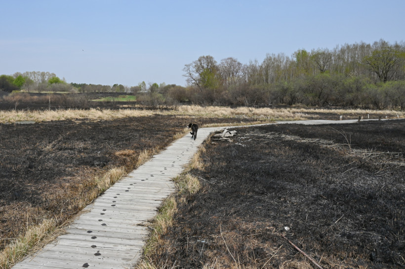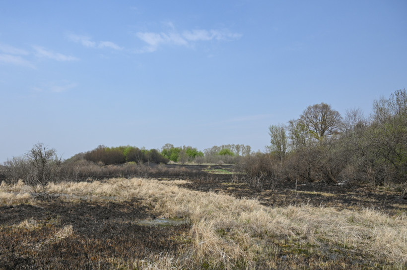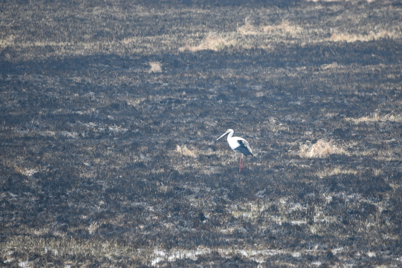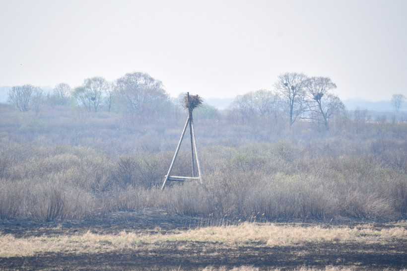 По словам сотрудников парка, птицы стали возвращаться на свои угодья сразу после того как прошел пал и остыла земля. Сегодня уже видно, как над выжженной поймой кружат аисты и журавли, ведь их кормовая база не пострадала — в болоте так же полно лягушек и мелкой рыбы.