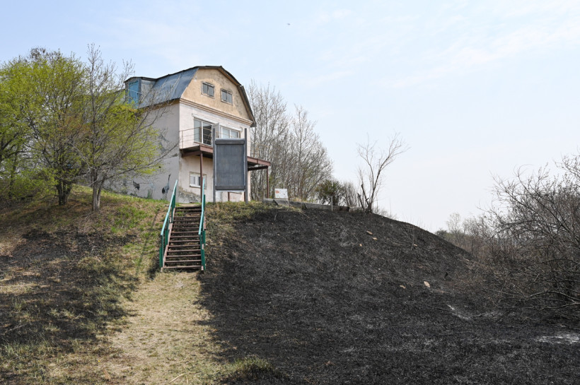 Дальше огонь с поймы перекинулся на террасу — место обитания лесного кота, барсуков, лис, енотовидных собак, ласки. Вся площадка, где раньше проводили детские смены и собирались посетители парка, — с домиками и кухней с дорогостоящим оборудованием — оказалась на линии беспощадного огня.
