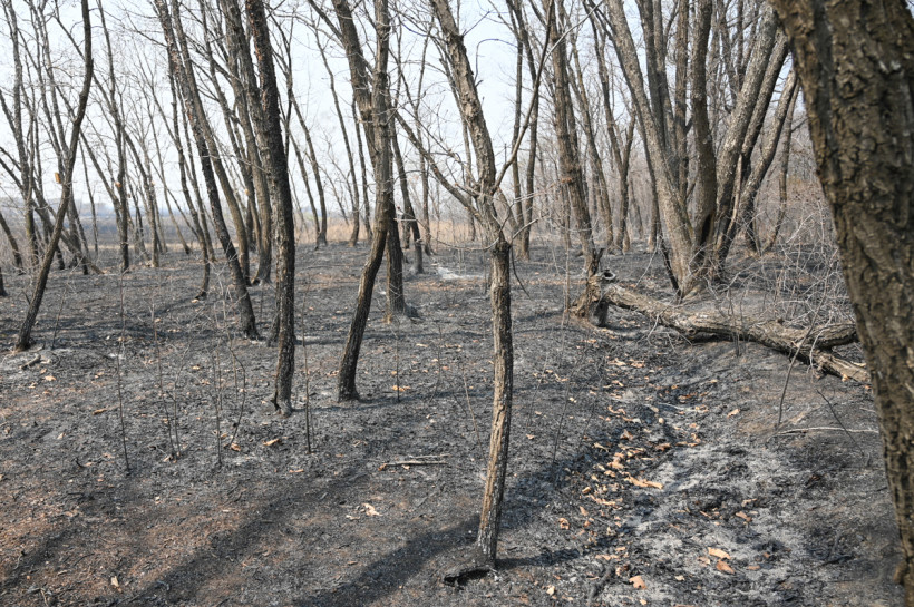 Раскаленный воздух и горячий пепел обжигал лица, от огня плавилась обувь, но защитники Муравьевского парка мужественно сражались за дело своей жизни — спасение редких видов краснокнижных птиц и животных. Двое суток — 9 и 10 мая — на территории заказника и парка бушевал самый масштабный за последние семь лет пожар. Тысячи гектаров выжженной заповедной земли, потерянные жизни диких животных и сгоревшие кладки пернатых — такова цена человеческой безответственности. «Амурская правда» побывала на территории парка, потерпевшего масштабное бедствие.