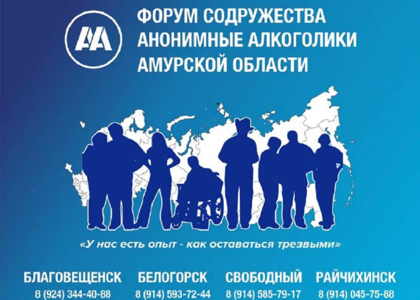 Узнать программу форума и задать интересующие вопросы можно по телефону горячей линии анонимных алкоголиков в Амурской области: 8-924-344-40-88.