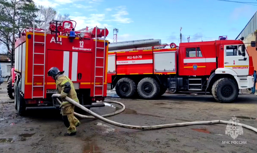 Шесть пожарных автомобилей тушили возгорание на территории базы в Благовещенске
