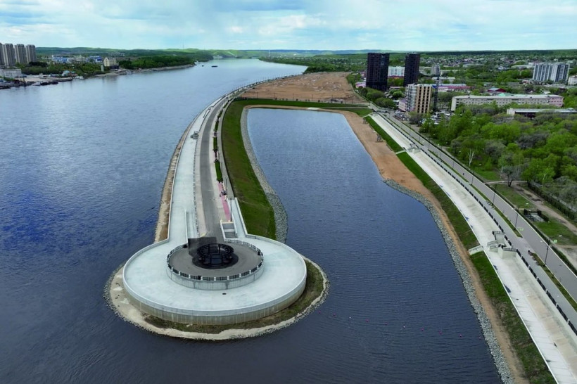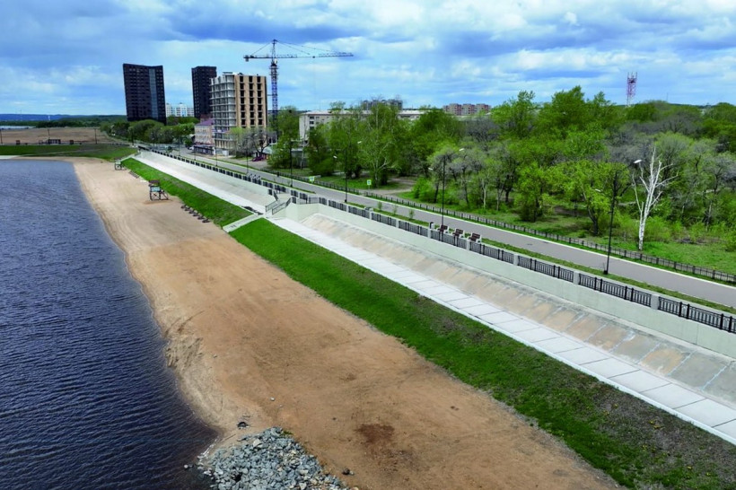 Общая протяженность площадки, где с 2020 года проходили работы, составляет 1 888 погонных метров. На 665-метровом участке № 5 за это время возвели мол — дамбу, которая отделяет образовавшийся водоем от реки Амур и всю территорию пляжной зоны. Непосредственно на пляже установили вышки для спасателей и шезлонги для отдыхающих.
