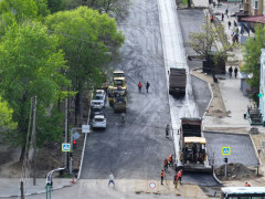 На улице Амурской в Благовещенске завершают укладку верхнего слоя асфальта