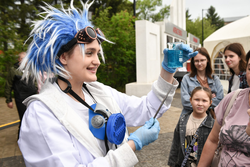 — Я хочу выучиться на переводчика, к химии интереса никогда не было. Но тут такие эксперименты! — удивляется увиденному десятиклассница из Свободного Настя Халаимова. — Мы пришли ради концерта Юли Савичевой, но ходим по интерактивным площадкам — всё так интересно.