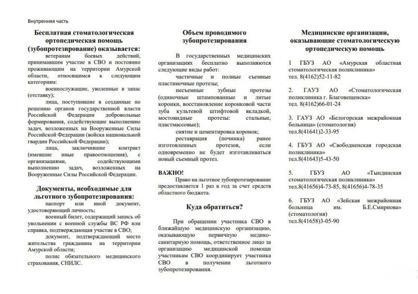 Где поставить зубные протезы участнику СВО: памятка амурского минздрава