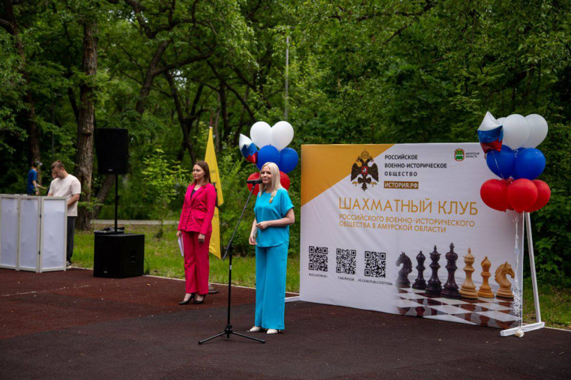 Настоящий праздник для любителей игры в шахматы устроили в День России в Первомайском парке Благовещенска. Здесь торжественно открылась первая в Амурской области шахматная площадка Российского военно-исторического общества (РВИО). На открытии побывала заместитель мэра Виктория Хопатько.
