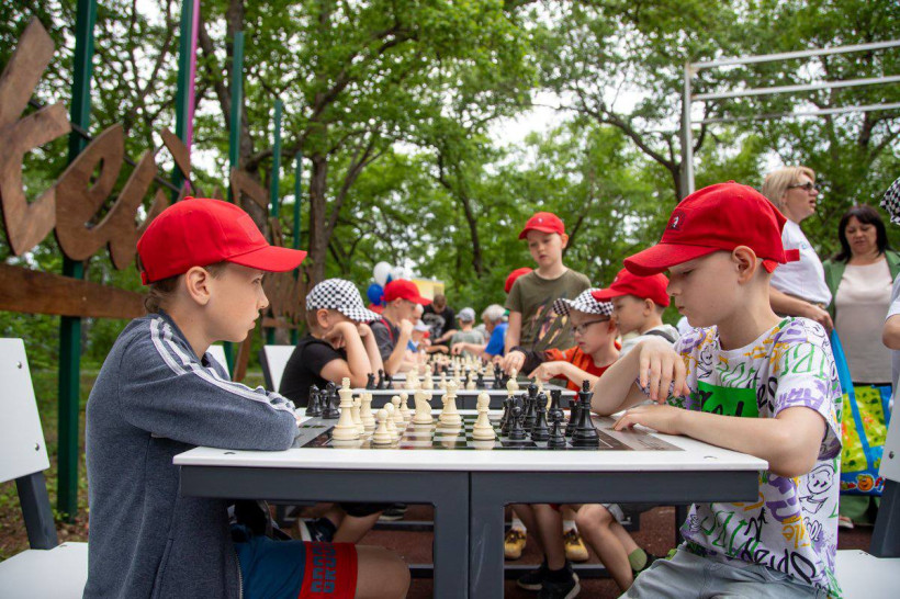 Первая в Приамурье шахматная площадка открылась в Первомайском парке Благовещенска