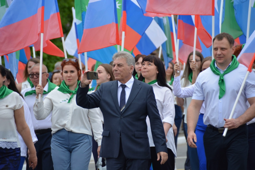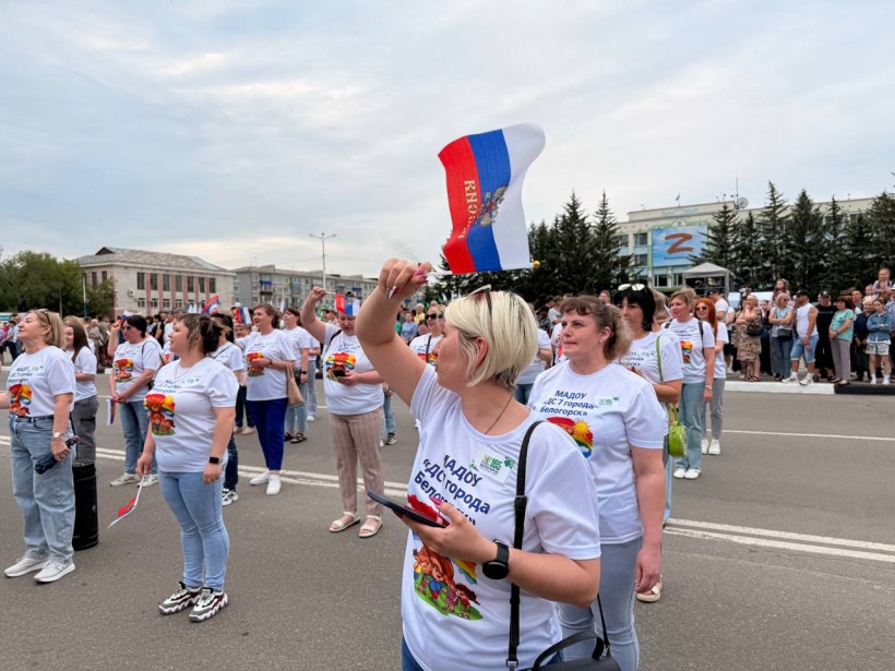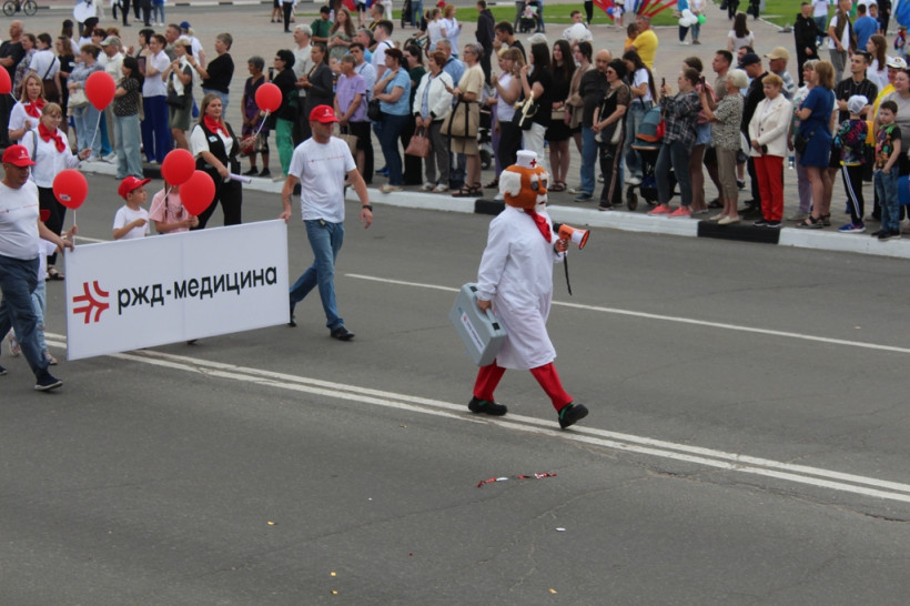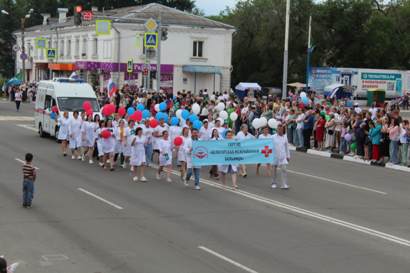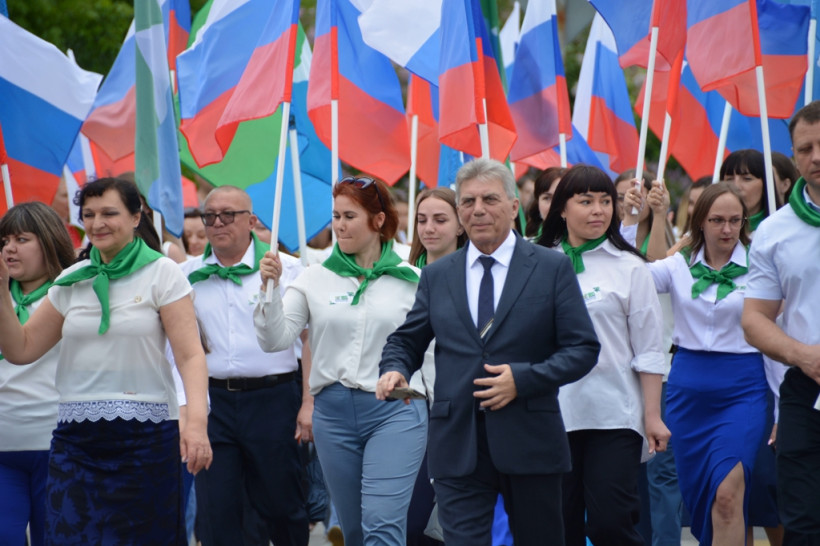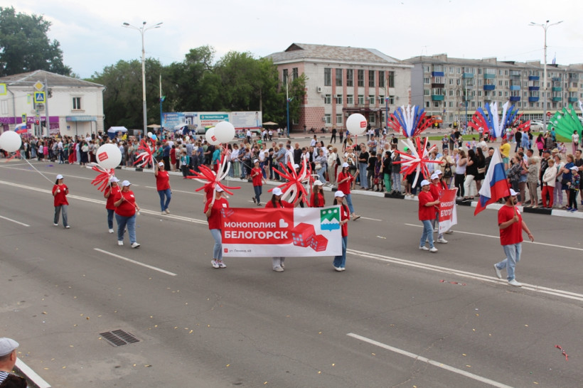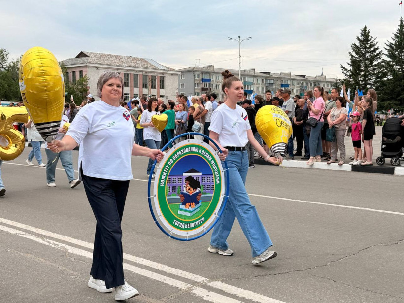 После официальное мероприятие сменило праздничное шествие трудовых коллективов. И первыми прошла колонна белогорской администрации, которую возглавил мэр Станислав Мелюков. Следом двинулись колонны сферы образования, дополнительного образования, культуры и спорта, РЖД, медиков, общественников, организаций, предприятий, учреждений города. Оформление каждой колонны было праздничным и соответствовало сфере деятельности и фирменному стилю.