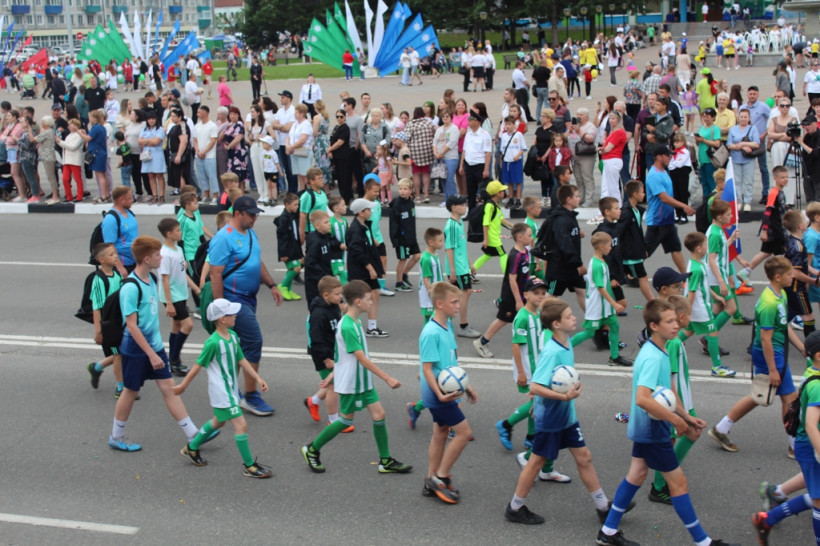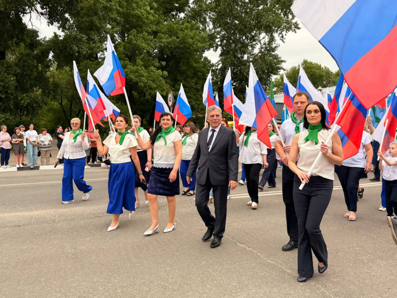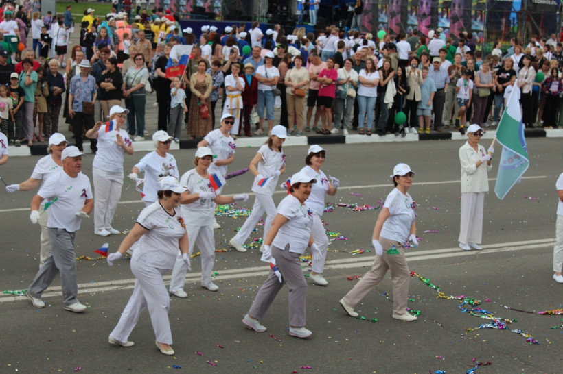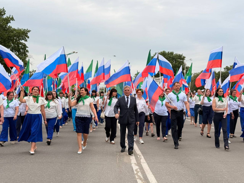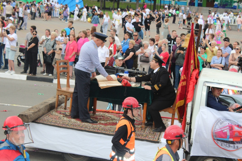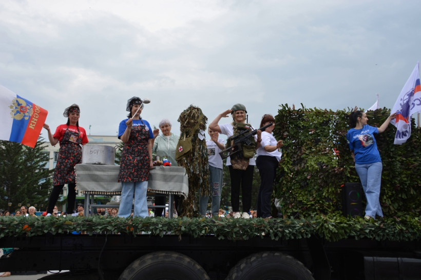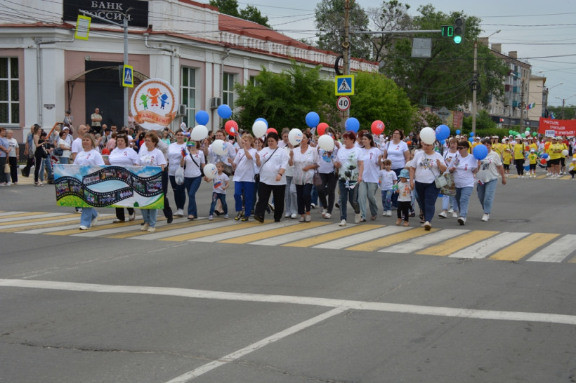 После официальное мероприятие сменило праздничное шествие трудовых коллективов. И первыми прошла колонна белогорской администрации, которую возглавил мэр Станислав Мелюков. Следом двинулись колонны сферы образования, дополнительного образования, культуры и спорта, РЖД, медиков, общественников, организаций, предприятий, учреждений города. Оформление каждой колонны было праздничным и соответствовало сфере деятельности и фирменному стилю.