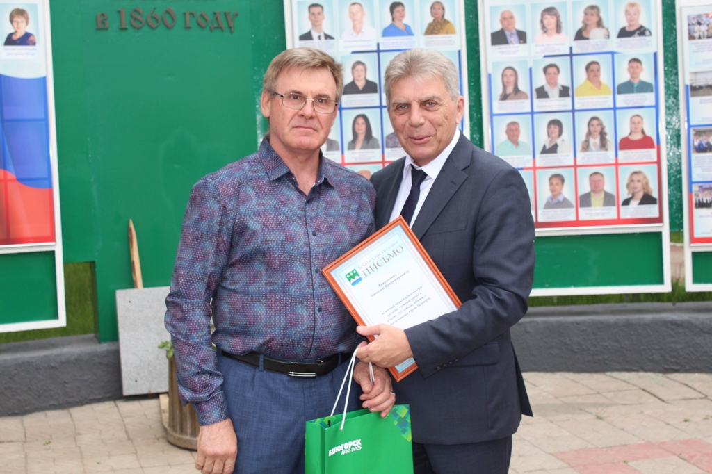 На торжественном собрании «Город славен людьми» чествовали тех, кто внес свой вклад в развитие Белогорска и зачитали поздравительный адрес губернатора Василия Орлова.