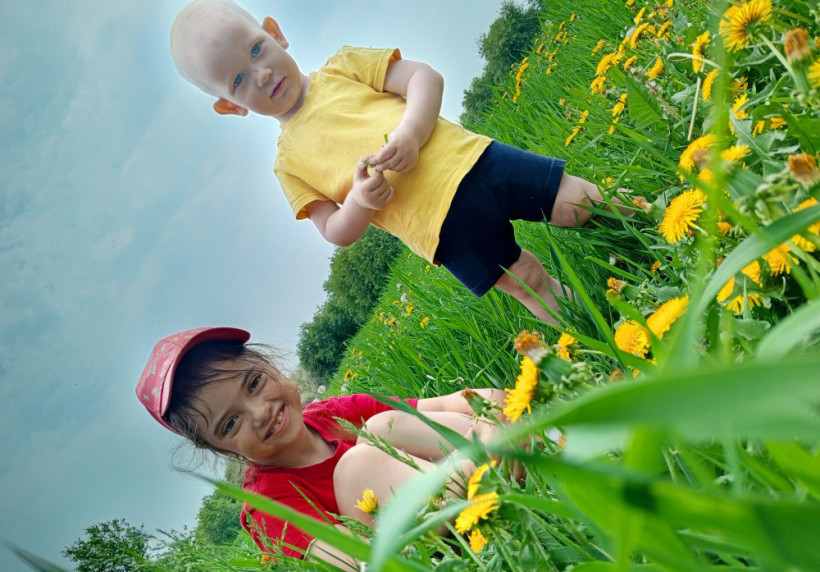 Одуванчики из Константиновки. На полянке одуванчиков девочка Катя (ей 2 года и 6 месяцев) играет с цветочками. Автор: Ангелина.