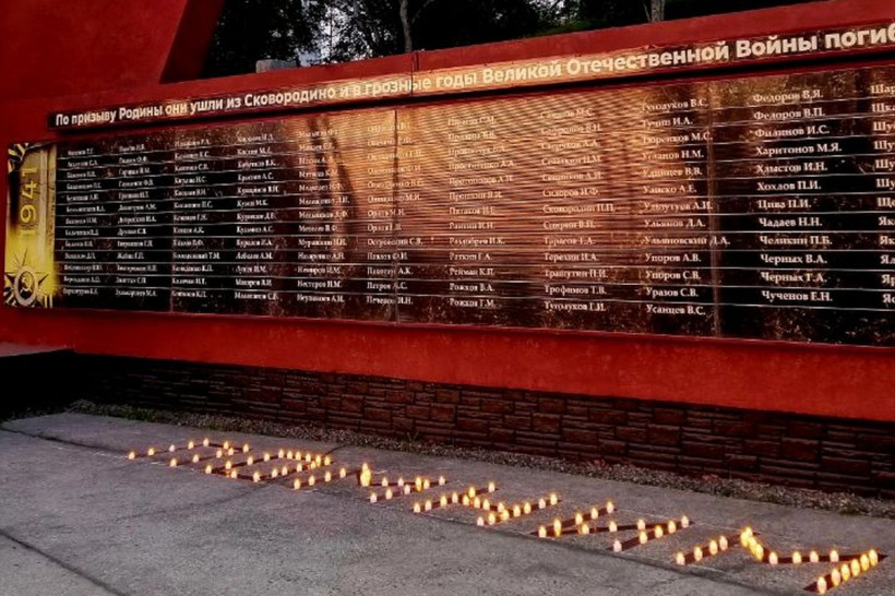 Чтобы вспомнить о павших земляка-воинах, жители Сковородина на рассвете собрались у мемориала «Скорбящая мать». В 04:00 здесь состоялся памятный митинг в честь тех, кто сражался на фронте и трудился в тылу, приближая Победу. Благодаря акции «Свеча памяти» в знак неугасимой благодарности поколению победителей зажглись сотни огней.