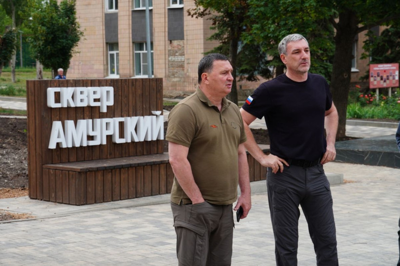 Губернатор Амурской области Василий Орлов осмотрел отремонтированные при поддержке региона объекты в подшефном Амросиевском округе ДНР. Он посетил библиотеку Амвросиевки, которую обновили по модельному стандарту, а также центральную площадь города. Последняя после реконструкции превратилась в комфортную зону отдыха с фонтаном.