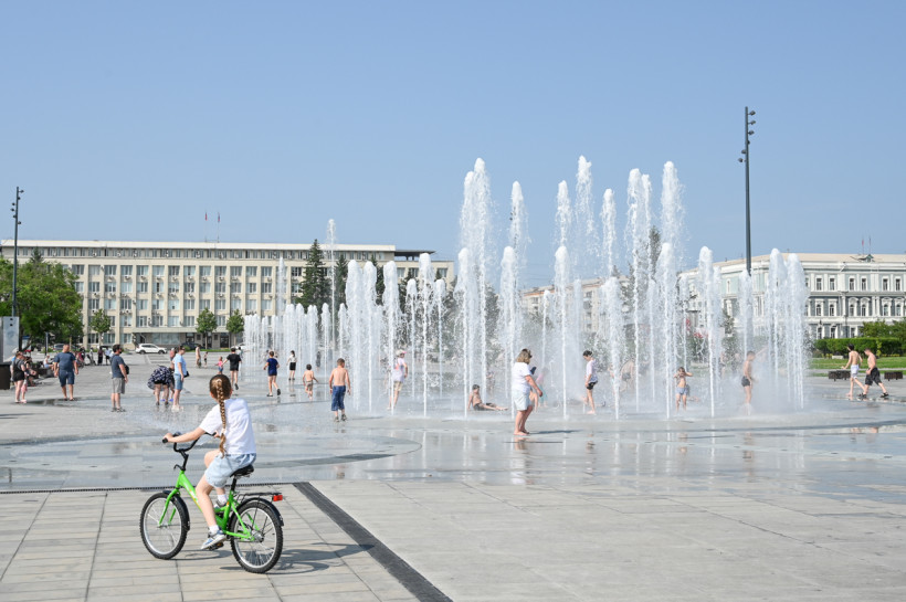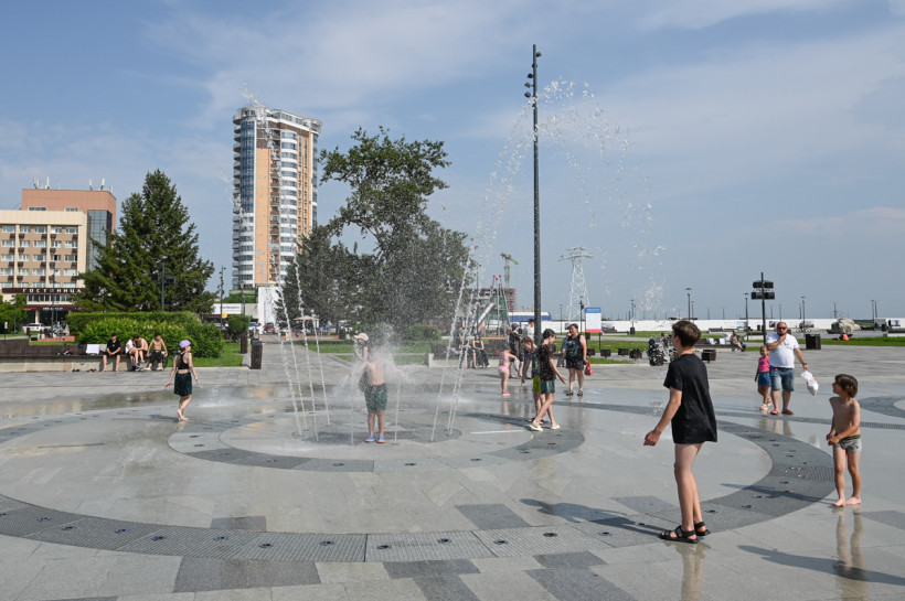 Фоторепортаж «Амурской правды»Благовещенск плавится под солнцем. Асфальт мягкий, как пластилин, воздух густой и обжигающий. В такие дни вода становится спасением. Фотокорреспондент «Амурской правды» Алексей Сухушин, вооружившись камерой и веером, прогулялся по набережной Амура и заглянул на популярный детский «пляж» — к фонтану на площади Ленина.