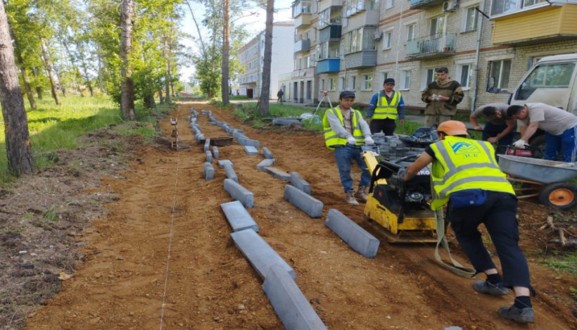 В поселке Аэропорт Благовещенска до конца сентября благоустроят общественное пространство в районе жилых домов №1–10 и №2. Сейчас здесь ведётся планировка территории, подготовка основания и укладка плитки.