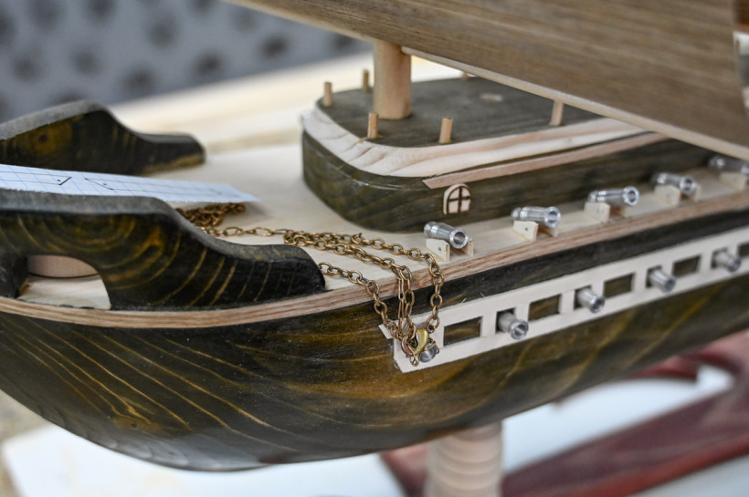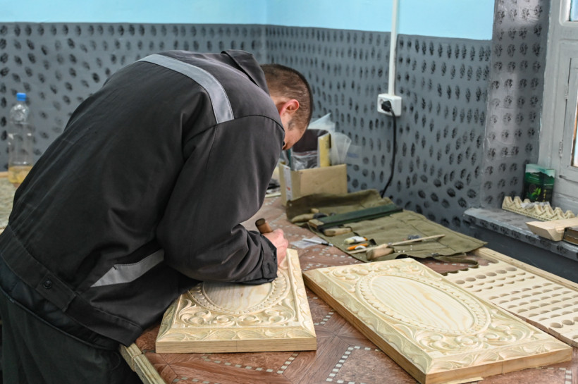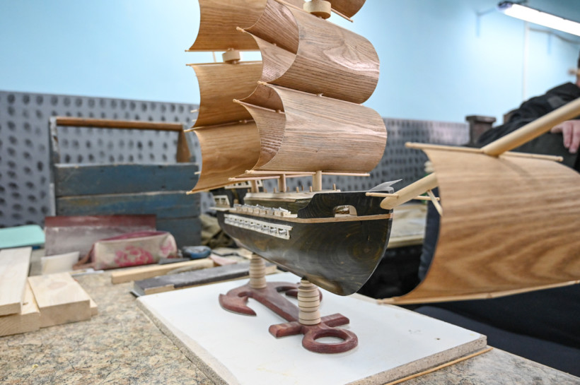 В столярной мастерской приятно пахнет древесиной. Пока мы проходим по цеху, никто из осужденных не прекращает работу. Уже немолодой колонист что-то вырезает лобзиком. Перед ним на столе поднимает паруса бригантина. Работа резчика по дереву детальная кропотливая и творческая. Нужны твердые руки и большая фантазия, особенно когда речь идет о сложной и детальной модели парусника.