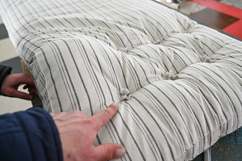 — Готовим на заказ 120 подушек из холлофайбера и столько же матрасов для детских кроваток. Они небольшие, длиной по 145 сантиметров, из ваты. Сегодня существует множество наполнителей для матрасов, но вата всё так же пользуется спросом, — рассказали работники колонии. — Во-первых, это экологически чистый материал, который обеспечивает естественную циркуляцию воздуха. Во-вторых, стоимость ваты значительно ниже, чем у современных синтетических наполнителей. Мы ее получаем в тюках, пропускаем через чесальную машину, потом распушаем и укладываем ровным слоем. Делаем всё на совесть.