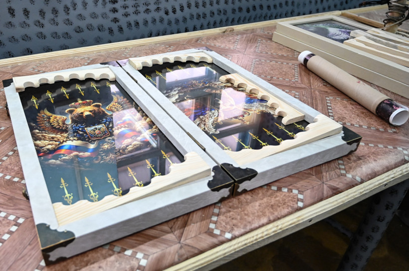 — Это у нас всё на продажу. Мы иногда участвуем в ярмарках выходного дня, привозим на выставки свои изделия и продаем, — пояснил бригадир. — Один из благовещенских предпринимателей постоянно заказывает у нас сувенирную продукцию: материалы он предоставляет, а мы шкатулки, нарды, гербы, рамы резные для картин и часы настенные делаем — всё что угодно.