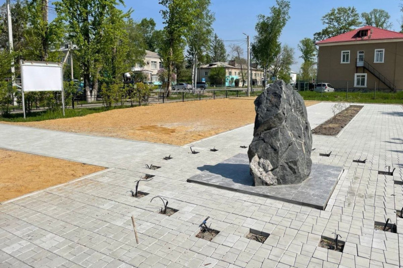 В сквере памяти репрессированным в Завитинске появились тротуарная плитка и декоративные кустарники