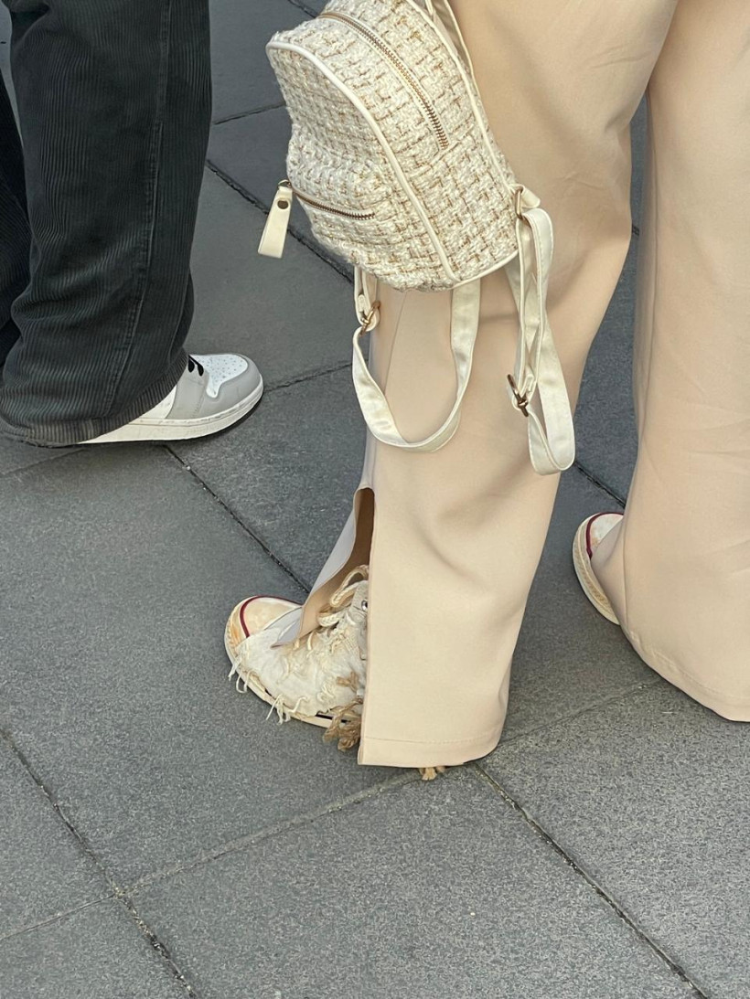 — Отметила для себя, что много было неклассической обуви. Тенденция на кеды, кроссовки, лоферы. Даже биркенштоки (шлёпки с анатомической подошвой. — Прим. ред.) увидела я у мальчишек. Это удобно и стильно, что не может не радовать. Радует, что девушки уходят от каблуков — меньше тех, кто идет согнувшись, потому что просто не умеет ходить на каблуках, — поясняет блогер.