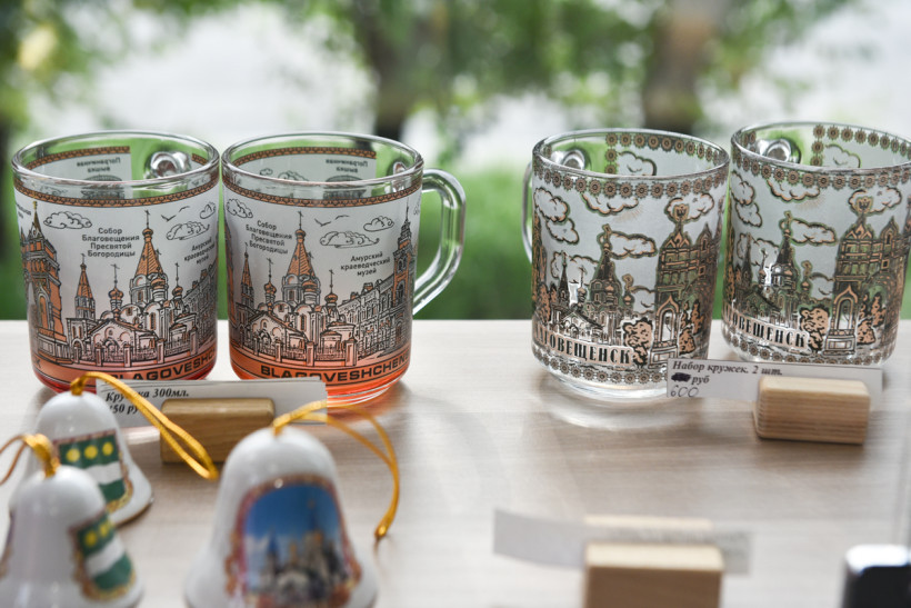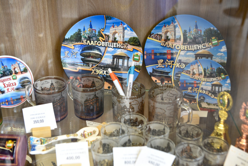 Любителей традиционных сувениров ждут монеты, магниты, тарелочки, кружки и стопки с изображениями Благовещенска и основных достопримечательностей города.