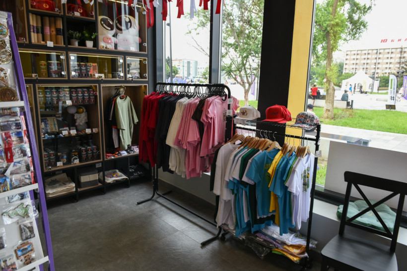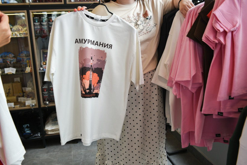 Разбирают футболки с надписями «Миру Амур», «Здесь космос ближе» и тематическими рисунками: их создает местный производитель — компания «Амурмания». Футболки стоят 2,9 тысячи рублей, худи — чуть меньше шести тысяч.