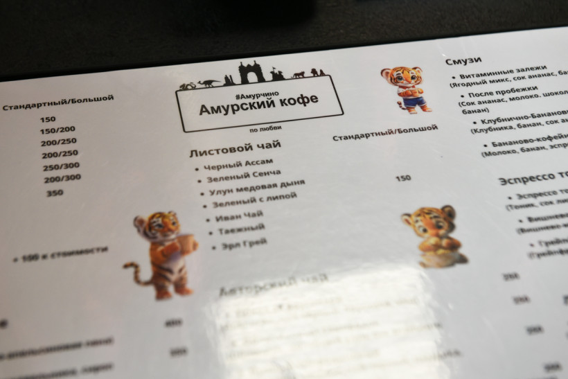 — Сейчас ждем поставку кофе из Китая — хотим посмотреть на продукт, может быть, тоже введем в меню. Ведь это — наш сосед! — показывает на противоположный берег Амура руководитель кофейни. — Сейчас кофе мы варим с кедровыми орешками, ягодами можжевельника.
