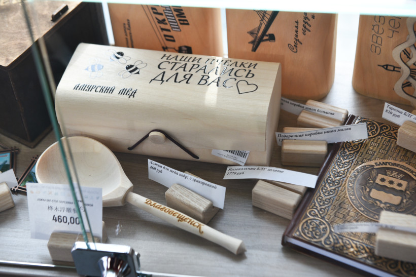 Для тех, кто хочет забрать с собой осязаемый кусочек Приамурья на память, в обоих павильонах ТИЦ продают сувенирную продукцию.