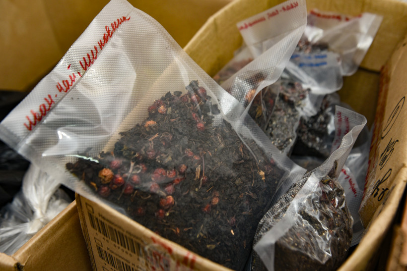 Ферментированный чай — еще одна вкусность, которую волонтеры Мазановского округа отправляют на фронт. Маленькие помощники — школьники — рвут листья малины, смородины, собирают иван-чай. На ночь всё отправляют в морозилку, а с утра листья скручивают трубочками и плотно утрамбовывают в банки. Под прессом они будут находиться до двух суток, а затем отправятся в сушилку. Как отмечают волонтеры, такой способ помогает сохранить все полезные свойства чая, а его насыщенный аромат напоминает бойцам о доме.
