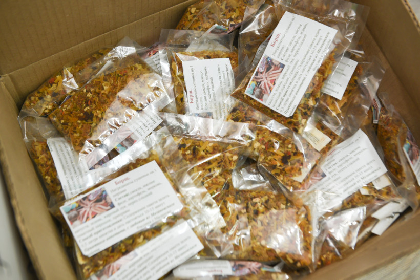 — В реторт-пакетах мы готовим тушеную картошку, борщи, рассольник, гречневый и гороховый супы, каши, кисели. Также собираем и сушим овощи, фрукты, травы. Есть у нас и готовые сушенные супы, которые бойцы заливают кипятком, в них мы используем только домашние ингредиенты. Сельчане приносят овощи, зелень, сейчас вот собирают грибы и уже интересуются, когда мы попробуем сделать для бойцов и грибной суп, — говорит Анна Александровна.