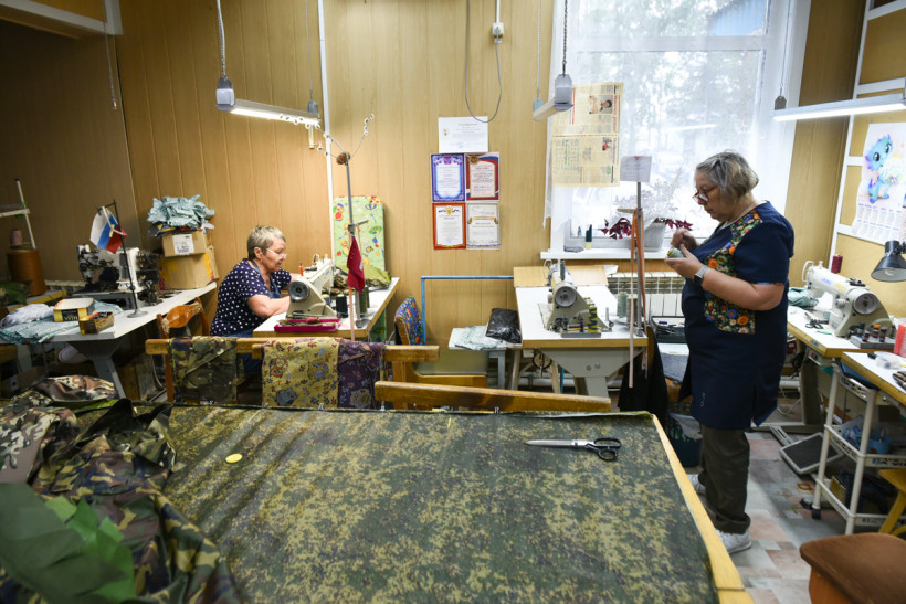 — Заказов для фронта очень много, — говорит владелица ателье Елена Бирюкова. —Например, сейчас мы отшиваем невидимые для тепловизоров плащи с капюшонами. Они универсальные, их можно растянуть, например, как палатку, можно натянуть на блиндаж. Нам мальчишки с фронта заказывали такие же накидки и на боевые машины даже, большие — 8 на 4 метра.