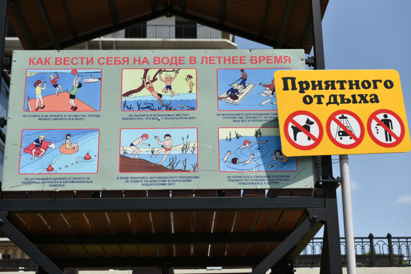 В местах, предназначенных для купания и отдыха населения у воды, есть спасательные круги и спасательные жилеты, концы Александрова, надувная лодка. На спасательных вышках размещены инструкции по спасению тонущего.