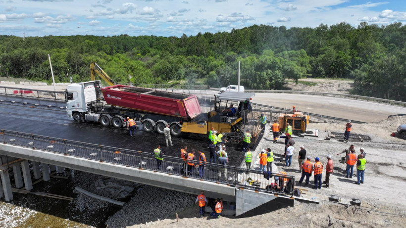 Кроме того, на этом на участке ранее построили мостовое сооружение через реку Безымянную — отсыпали земляное полотно, укрепили верхние слои методом холодной регенерации, обустроили водопропускную систему и укрепили откосы.