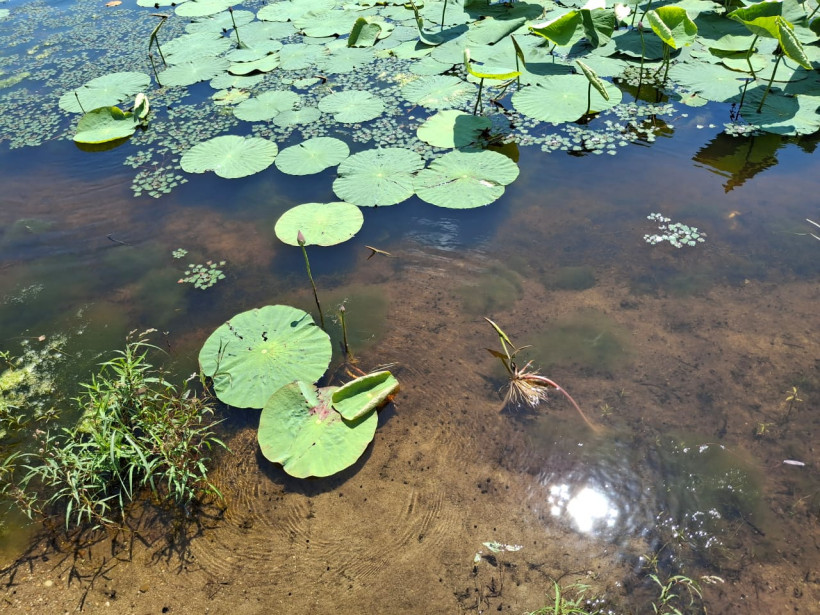 Этот водоем, появившийся когда-то давно на месте старого карьера — находится справа от нового моста через Зею. Оно неглубокое, прогревается быстро, дно у него илистое, из-за чего не интересно купальщикам. Рыбаков там тоже не бывает, поскольку не водится интересной для них рыбы. Плюс конструкция моста защищает от холодных ветров участок, где растут водные цветы. В общем, это самое подходящее место для разведения цветка Будды.