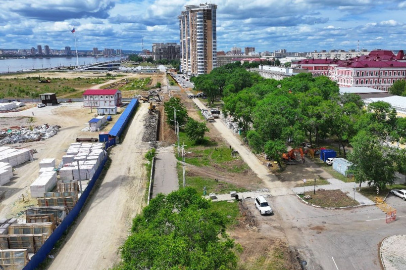 В столице Приамурья полным ходом идет обновление улицы Краснофлотской, которое проводят по президентскому нацпроекту. Сейчас подрядная организация демонтирует старое покрытие и подпорную стенку набережной. Закончить ремонт намерены до конца 2026 года.