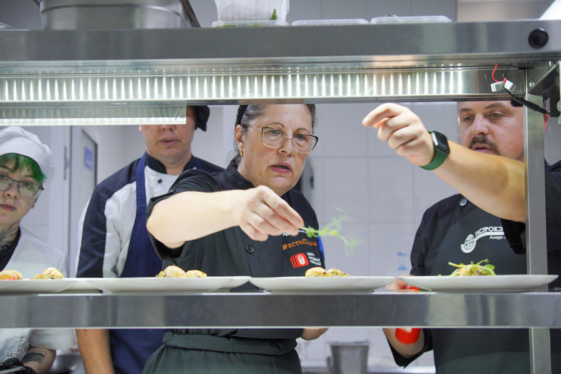 — Повара такого уровня приезжают к нам первый раз, и я первый раз участвую в таком проекте, — рассказала Агрипина. — Мне сказали, что к нам в гости едет команда, которую надо принять как туристов. Мы приготовили для угощения обычные сырные тарелки. Но в завершение решили подать наши узелки, жаренные как шашлычки на мангале при высокой температуре, — так наши сыры подаются в Бразилии во всех ресторанах. Поварам понравилось, и они сказали, что возьмут наши сыры в работу. А потом пригласили меня в качестве гостя. Было три блюда из наших сыров, и мне все понравились. Но особо я хочу выделить блюдо повара из ресторана «Восток».