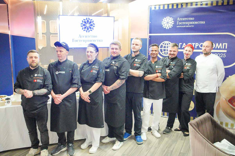 В качестве подарка команда шеф-поваров презентовала ланч-боксы для туристов: один — мясной, другой — рыбный, с блюдами от шеф-поваров. Причем в ланч-боксах есть даже десерты. Кроме того, специалисты гастрономии предложили вариант чайной церемонии по‑амурски: напиток из ферментированного курильского чая, чаги, шиповника, черники, гвоздики и бадьяна. А для сопровождения к чаю предлагались засахаренные лепестки красоднева с дикоросной мятой.