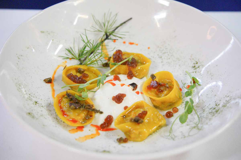 Нагендра Махадеваппа как истинный вегетарианец приготовил полезные блюда: филе индейки на пару с пюре из брокколи и зеленого гороха с брусничным соусом и ароматным маслом с паприкой. Но его «Соевое солнце» поразило всех. На первый взгляд — пельмени, только желтые, так как в тесто добавлена куркума. А фаршем стало соевое мясо. Однако оно так мастерски приготовлено, что несведущий человек даже не догадается, что речь идет о сое. И всё это приправлено чесноком, имбирем, папоротником, сметаной.