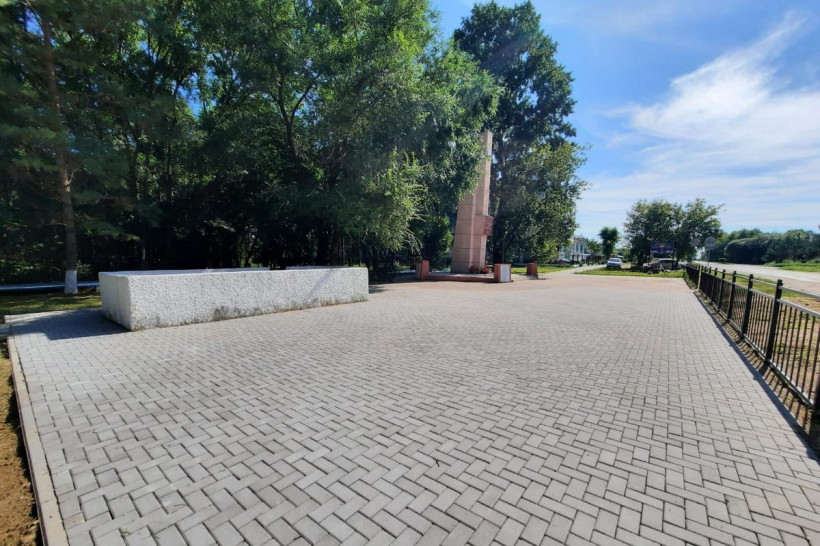 В центре села Козьмодемьяновка отремонтировали территорию у памятника воинам-землякам