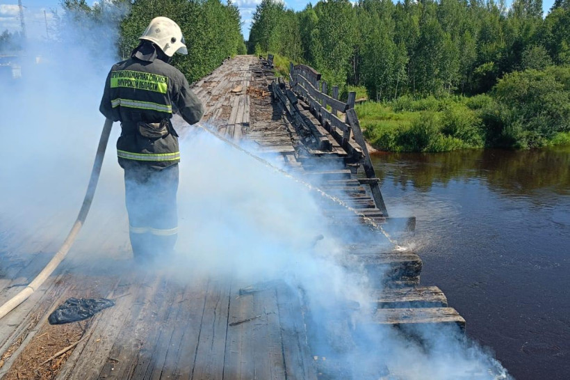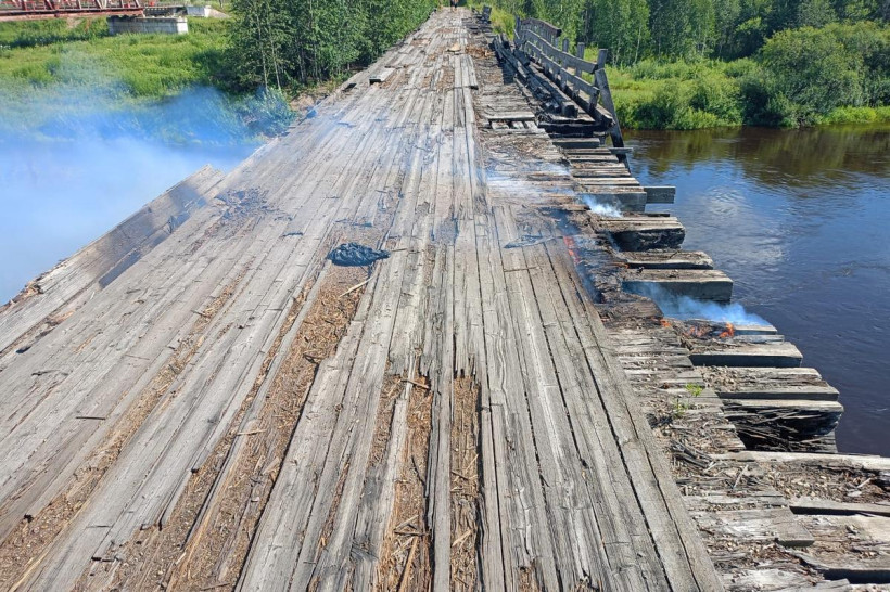 Аварийный мост через реку Бысса в Селемджинском районе 28 июля стал еще опаснее. В последний понедельник месяца около 14:30 очевидцы сообщили о возгорании старой деревянной конструкции на окраине поселка Февральск.