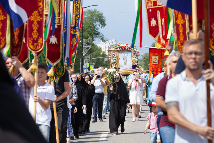 Ежегодный крестный ход пройдет в честь Албазинской иконы Божией Матери «Слово плоть бысть» и чудесного явления Богородицы на Амуре в 1900 году. Перед этим в 09:00 проведут божественную литургию в Благовещенском кафедральном соборе. Горожане дойдут до Триумфальной арки и совершат молебен перед иконой о благополучии города и области, уточнили в Благовещенской епархии.