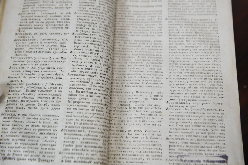 А вот «Полный французский и российский лексикон», отпечатанный в Императорской типографии Санкт-Петербурга в 1798 году, является словарем. Над ним работал известный в то время переводчик Иван Татищев, о чем свидетельствует указание на титульном листе: «Рачительное сличение с французским оригиналом, исправленное и дополненное статским советником И. Татищевым».