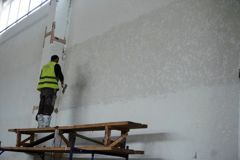 Работы в спортзале начались в мае этого года. Демонтажные работы почти завершены. Рабочие сделали крышу и отмостку, заменили окна, промыли и прочистили систему отопления. Далее уложат паркетное покрытие и оштукатурят стены. Завершится ремонт утеплением и обновлением фасада.